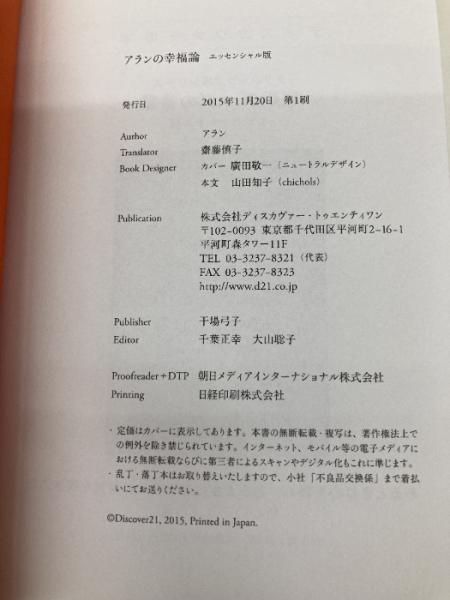 アランの幸福論 エッセンシャル版 ディスカヴァー・トゥエンティワン アラン