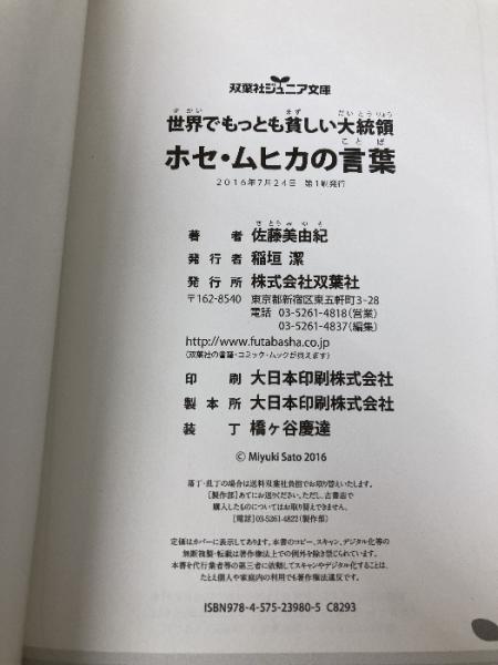 【※カバー無し】世界でもっとも貧しい大統領ホセ・ムヒカの言葉 (双葉社ジュニア文庫) 双葉社 佐藤 美由紀