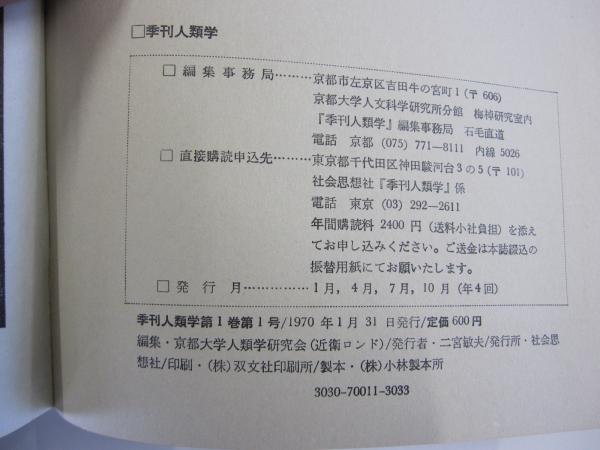 季刊 人類学 1-1 1970