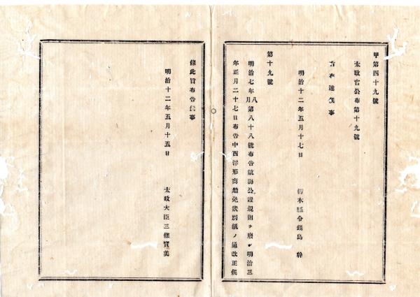 • 解説 N26012158○明治布告布達○明治7年航海公証規則を廃し 明治3年西洋形商船免状を改正 別紙 太政大臣三条実美○明治12年太政官布告 栃木県○和本古書古文書