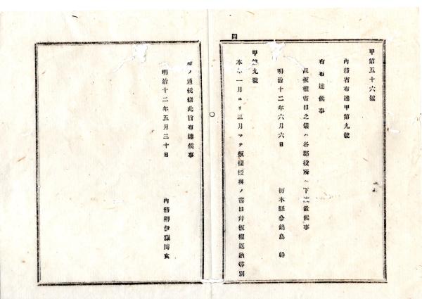 明治布告布達○本年1月~3月まで版権授与の書目并版権返納等別冊の通り 内務卿伊藤博文○別冊は各郡役場へ下渡 栃木県令鍋島幹○明治12年内務省栃木県布達○和本古書古文書