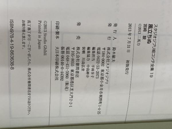風立ちぬ スタジオジブリ絵コンテ全集19 徳間書店 宮崎駿