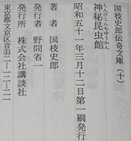 • 解説 国枝史郎伝奇文庫10 神秘昆虫館 講談社 昭和51年3月第1刷