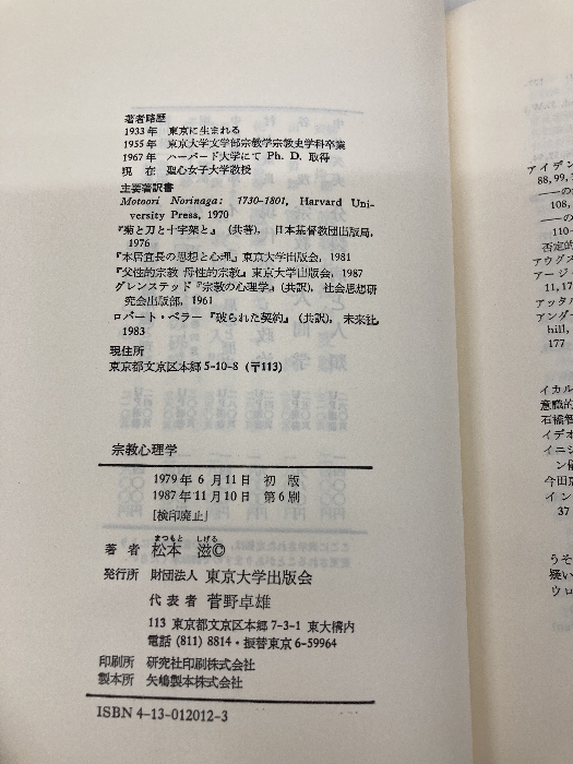 宗教心理学 東京大学出版会 松本 滋