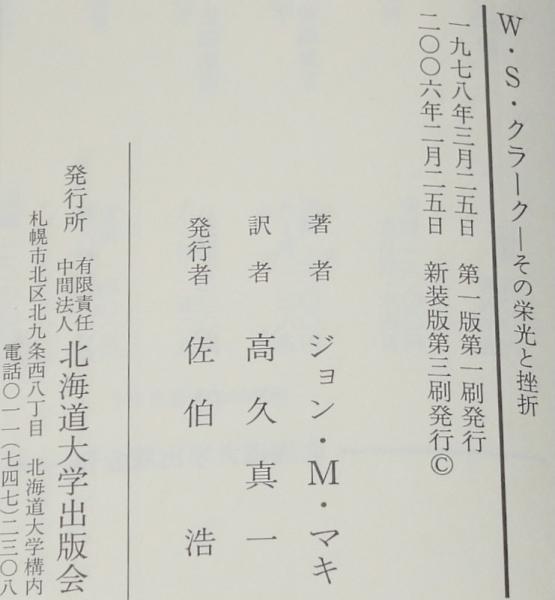 • 解説 W・S・クラーク その栄光と挫折 北海道大学出版会 2006年2月新装版第3刷 B6判帯付.