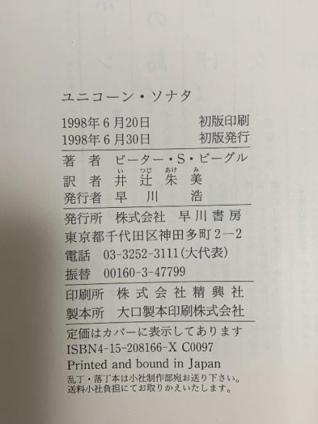 ユニコーン・ソナタ 早川書房 ピーター・S. ビーグル