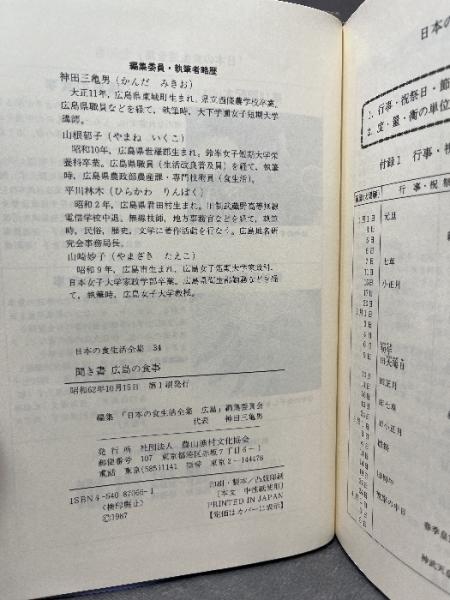 聞き書 広島の食事 農山漁村文化協会 広島の食事編集委員会 月報付