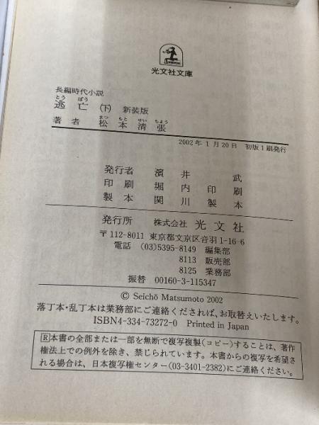 逃亡: 長編時代小説 (下) (光文社文庫 ま 1-12 光文社時代小説文庫) 光文社 松本 清張