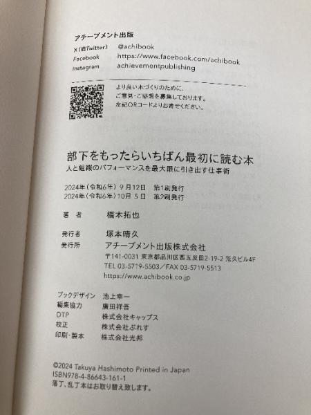 部下をもったらいちばん最初に読む本 アチーブメント出版 橋本拓也