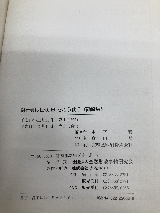 【※カバー無し】銀行員はEXCELをこう使う (融資編) 金融財政事情研究会 木下 泰