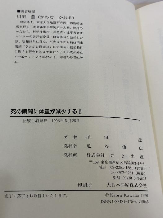 【※書き込み有り】死の瞬間に体重が減少する: 魂は存在するか 生命科学最前線 たま出版 川田 薫