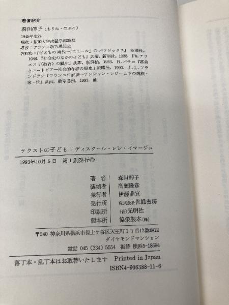 テクストの子ども: ディスクール・レシ・イマージュ 世織書房 森田 伸子