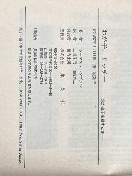 ※カバー無し わが子、リッチー―父が息子を殺すとき (1982年) 集英社 トーマス・トンプソン