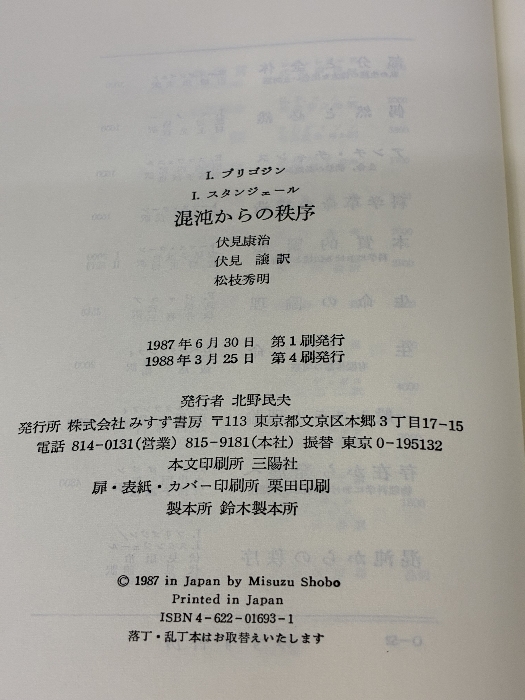 【※イタミ有り】混沌からの秩序 みすず書房 I. プリゴジン