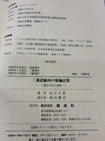 三菱造船所の原価計算: 三菱近代化の基礎 創成社 山下正喜