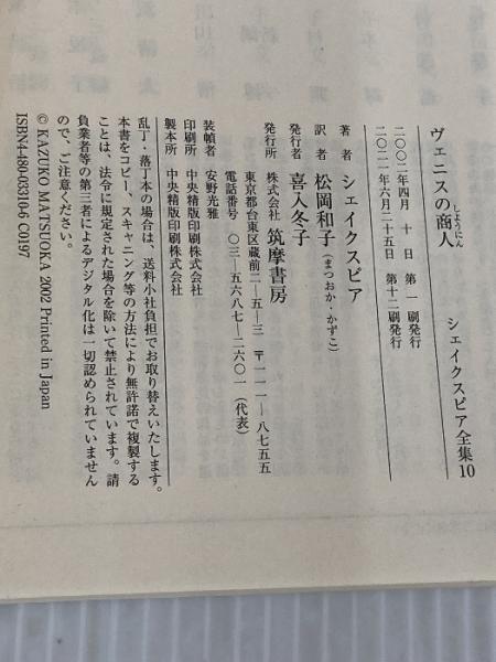 シェイクスピア全集 (10) ヴェニスの商人 (ちくま文庫) 筑摩書房 W. シェイクスピア