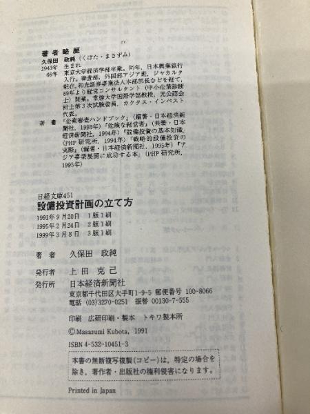 設備投資計画の立て方 (日経文庫 451) 日本経済新聞出版 久保田 政純