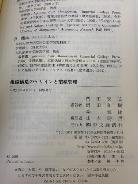 組織構造のデザインと業績管理 中央経済グループパブリッシング 門田 安弘