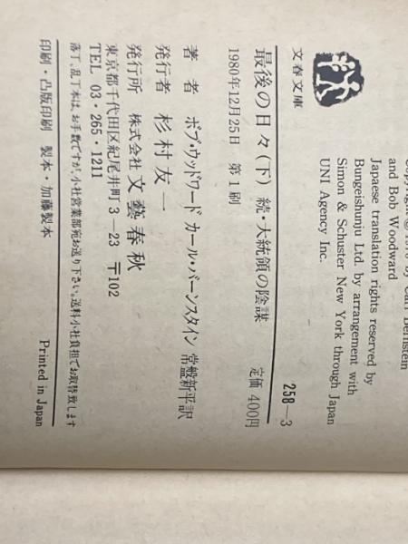 ※イタミ有 最後の日々 下―続・大統領の陰謀 (文春文庫) 文藝春秋 カール・バーンスタイン