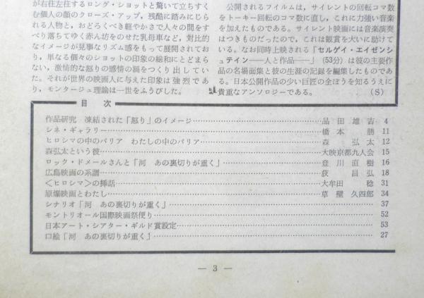 日本アート・シアター・ギルド 作品研究・凍結された「怒り」のイメージ/品田雄吉 シネ・ギャラリー/橋本勝 ヒロシマの中のパリアわたしの中のパリア/森弘太 森弘太という彼/大映京都九人会 ロック・ドメールさんと「河あの裏切りが重く」/登川直樹 広島映画の系譜/荻昌弘 〈ヒロシマ〉の挿話/大牟田稔 原爆映画とわたし/草壁久四郎 他