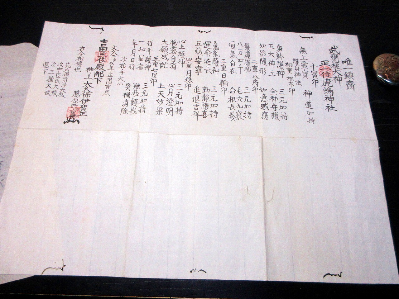 • 解説 江戸文久2年(1862)神道「護身神法」1点/神主大久保伊賀正政重(鹿島神社)/古書古文書/手書き/茨城県です。