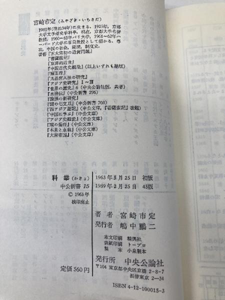 科挙: 中国の試験地獄 (中公新書 15) 中央公論新社 宮崎 市定