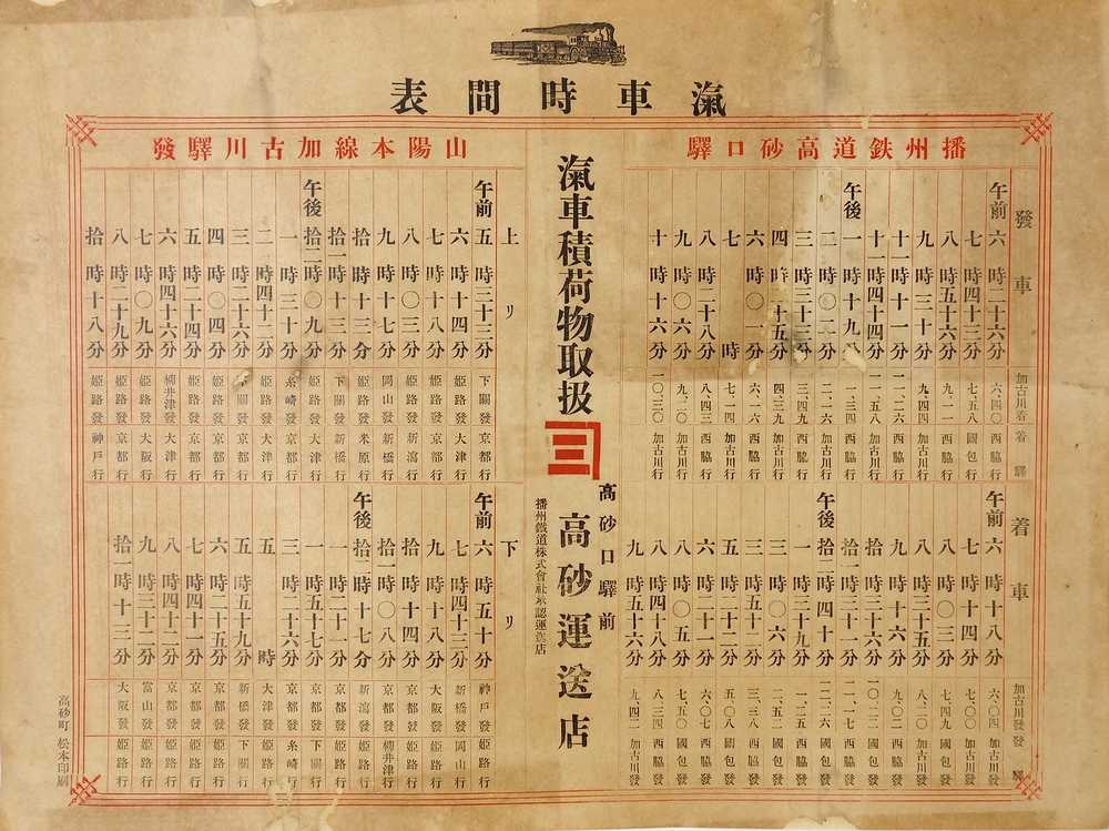 播州鉄道高砂口駅・山陽本線加古川駅発 汽車時間表