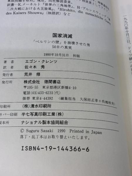 国家消滅: インサイド・ドキュメント ベルリンの壁を崩壊させた男50日の真実 徳間書店 エゴン クレンツ