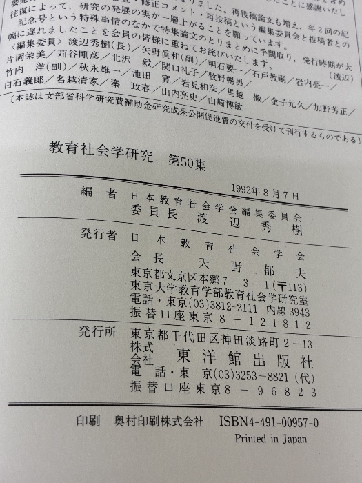 教育社会学研究 (第50集記念号) 東洋館出版社 日本教育社会学会