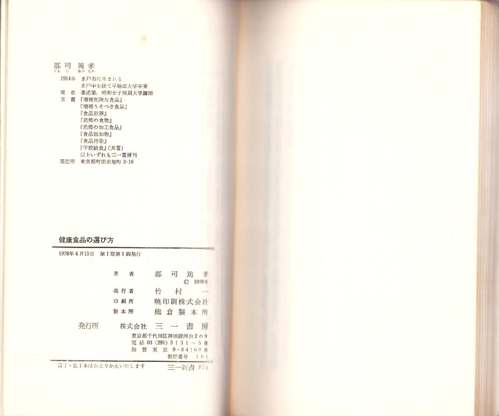 • 解説 新書判、第1版第1刷、カバー、229頁、愛読者カード付、値札はがし跡