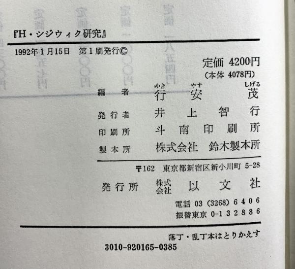 H・シジウイク研究 -現代正義論への道-1992年 以文社 編:行安茂