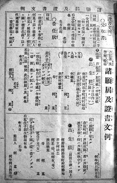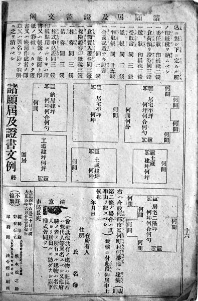 諸官署警察役場<現行法規>諸願届書式 B6判16p 法令館 大正4年