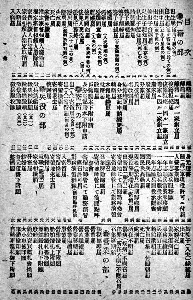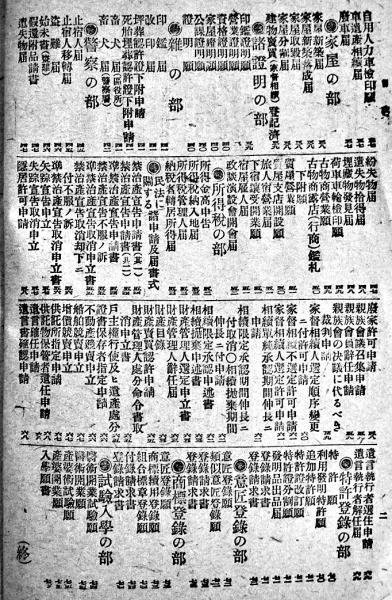 • 解説 戸籍の部/兵役の部/営業の部/家屋の部/警察の部/特許登録の部/他