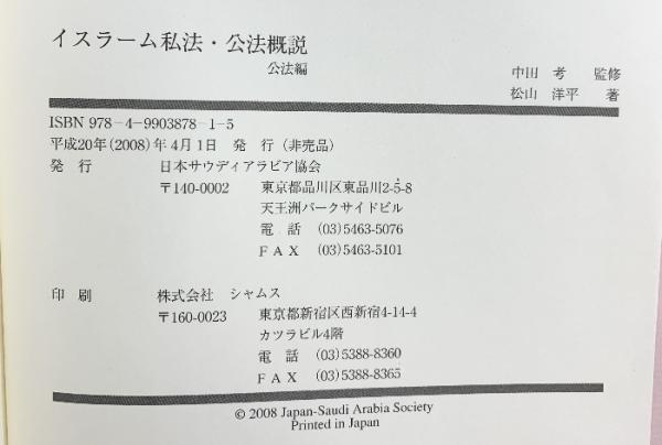 イスラーム私法・公法概説-公法編- 日本サウディアラビア協会 監修:中田考 著:松田洋 平成20年 【非売品】