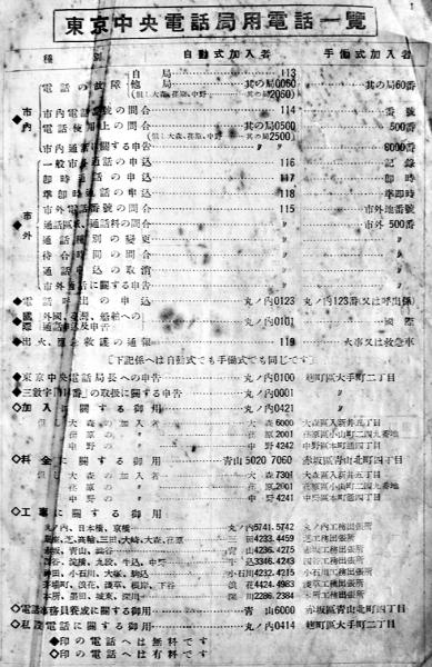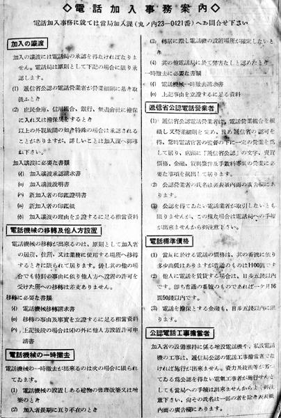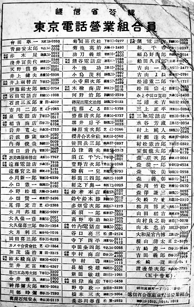 一般市外通話/電話加入事務案内/逓信省公認東京電話営業組合員一覧/電話御使用上の注意