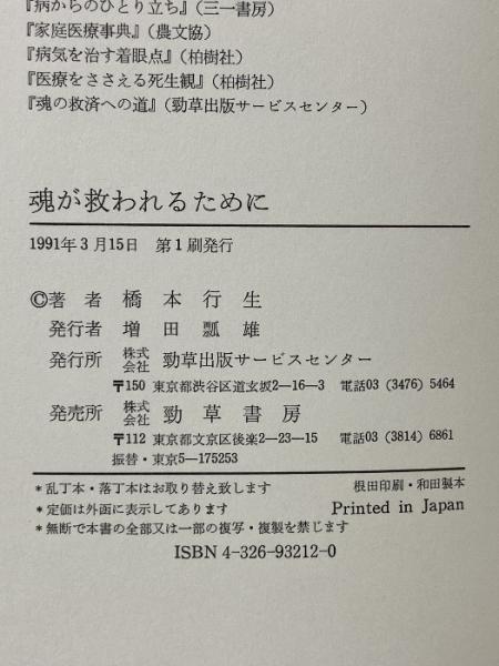 魂が救われるために 勁草出版サービスセンター 橋本 行生