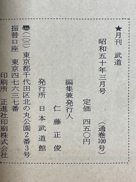 月刊武道 昭和50年3月号 通巻100号