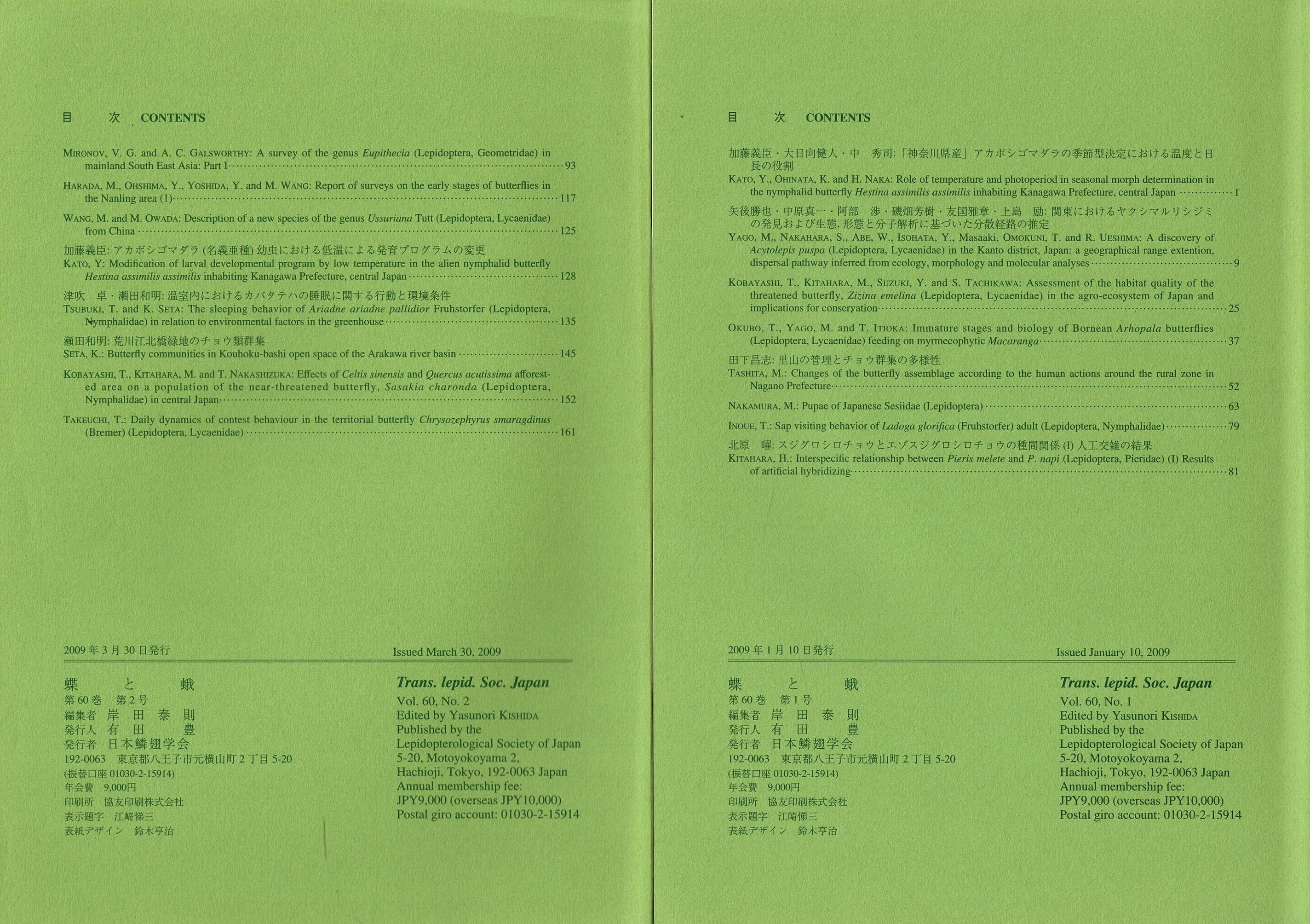 蝶と蛾 Vol.60 No.1、No.2 Vol. 1, pt. 2 (Nov. 1949)-