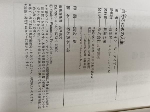 自分のための人生: 一日一日「自分を大事にして生きる」生活術 (単行本) 三笠書房 ウエイン・W. ダイアー