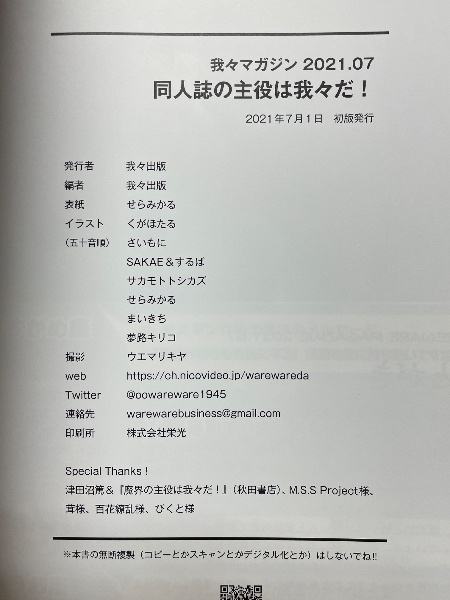 同人誌の主役は我々だ! 我々マガジン 2021.07