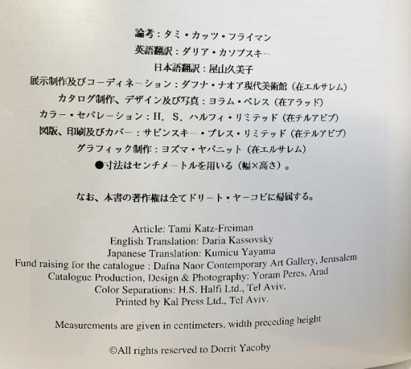 【図録】ドリート・ヤーコビ DORRIT YACOBY 在日カナダ大使館 大阪府立現代美術センター 1996年