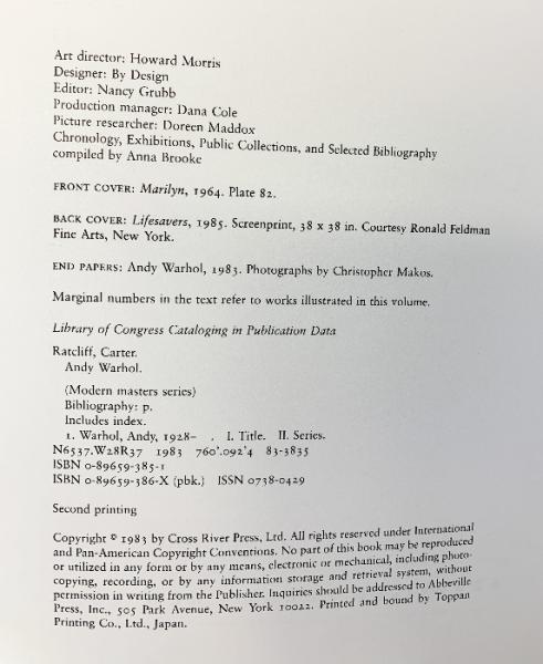 【洋書】【図録】『WARHOL』CARTER RATCLIFF AbbevilleModemMasters1983