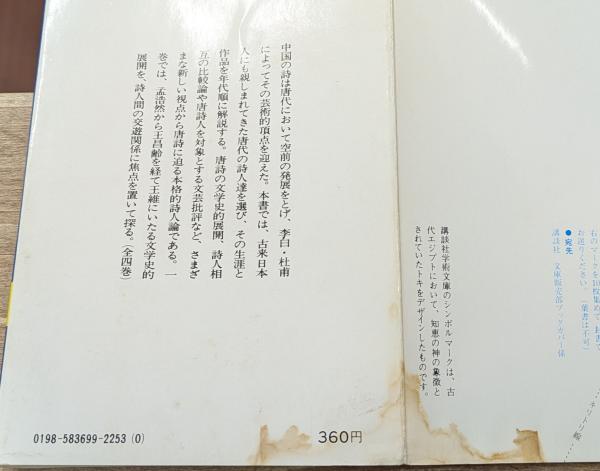 唐代詩人論 全4冊揃い(講談社学術文庫)
