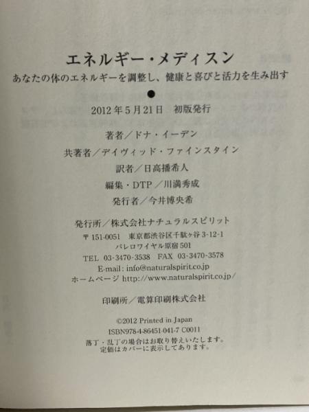 エネルギー・メディスン―あなたの体のエネルギーを調整し、健康と喜びと活力を生み出す ナチュラルスピリット ドナ・イーデン