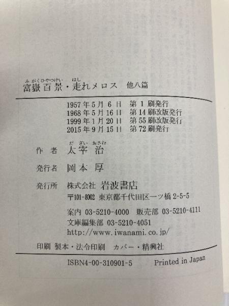 富嶽百景・走れメロス 他八篇 (岩波文庫) 岩波書店 太宰 治