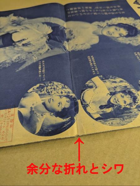 ※状態C(経年傷み・ヤケ・シミ・汚れ。余分な横折れ・シワ、フチ傷み・折れ・少破れ、折り目に小穴有り。)