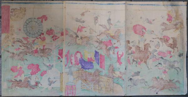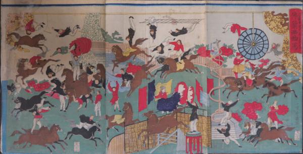 浅草観音境内ニ於テ興行仕候 仏蘭西曲馬  浮世絵 錦絵 版画 明治 見世物 興行物 競馬 曲馬
