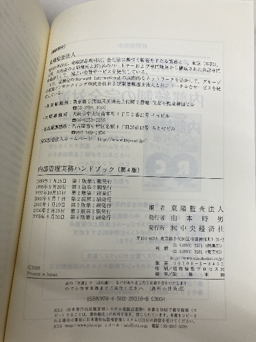 内部管理実務ハンドブック 第4版 中央経済グループパブリッシング 東陽監査法人