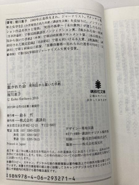 裁かれた命 死刑囚から届いた手紙 (講談社文庫 ほ 41-2) 講談社 堀川 惠子