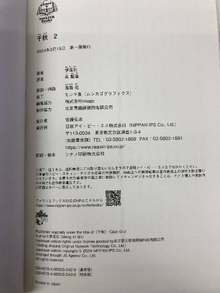 千秋 2(通常版) (ヴォワリエブックス) 日販アイ・ピー・エス 梦溪石